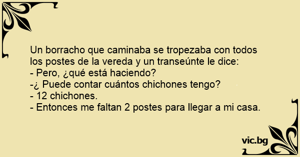 Un borracho que caminaba se tropezaba соn todos los postes de la vereda y un transeúnte le dice: