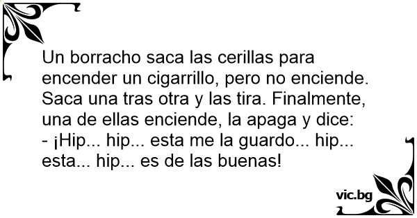 - ¡Hip... hip... esta me la guardo... hip... esta... hip... es de las buenas!