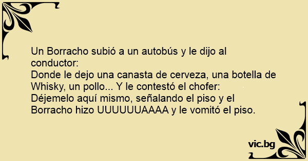 Donde le dejo una canasta de cerveza, una botella de Whisky, un pollo... Y le contestó el chofer:
