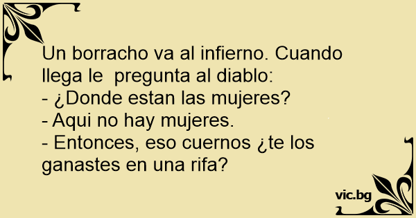 Un borracho va al infierno. Cuando llega le pregunta al diablo: