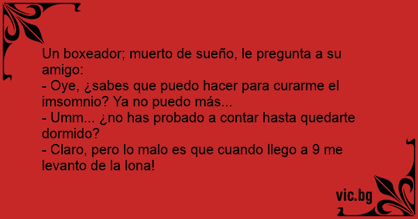 Un boxeador; muerto de sueño, le pregunta a su amigo: