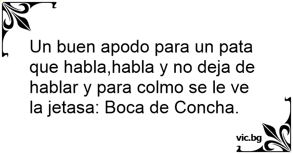 Un buen apodo para un pata que habla,habla y no deja de hablar y para colmo se le ve la jetasa: Boca de Concha.