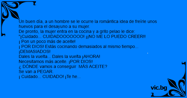 Un buen día, a un hombre se le ocurre la romántica idea de freírle unos huеvоs para el desayuno a su mujer.