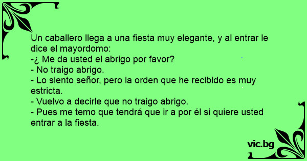 Un caballero llega a una fiesta muy elegante, y al entrar le dice el mayordomo: