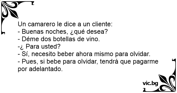 - Pues, si bebe para olvidar, tendrá que pagarme por adelantado.