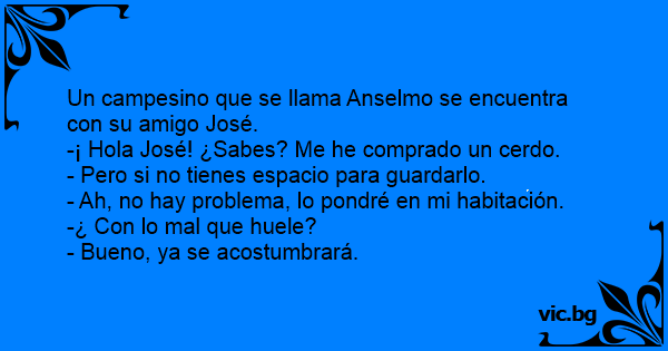 -¡ Hola José! ¿Sabes? Me he comprado un cerdo.