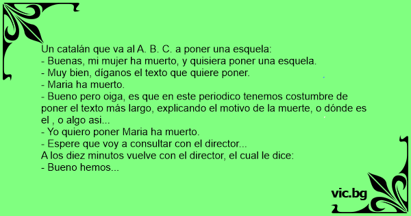 - Buenas, mi mujer ha muerto, y quisiera poner una esquela.