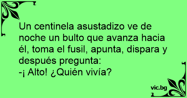 Un centinela asustadizo ve de noche un bulto que avanza hacia él, toma el fusil, apunta, dispara y después pregunta: