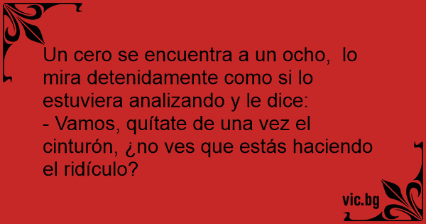 Un cero se encuentra a un ocho, lo mira detenidamente como si lo estuviera analizando y le dice: