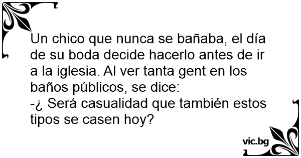 Un chico que nunca se bañaba, el día de su boda decide hacerlo antes de ir a la iglesia. Al ver tanta gent en los baños públicos, se dice: