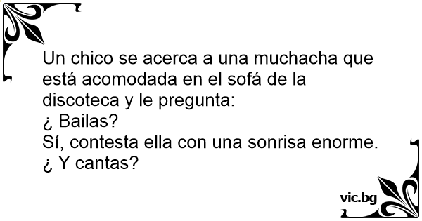 Un chico se acerca a una muchacha que está acomodada en el sofá de la discoteca y le pregunta:
