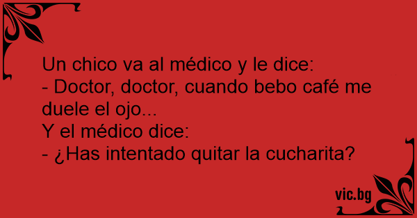 - Doctor, doctor, cuando bebo café me duele el ojo...