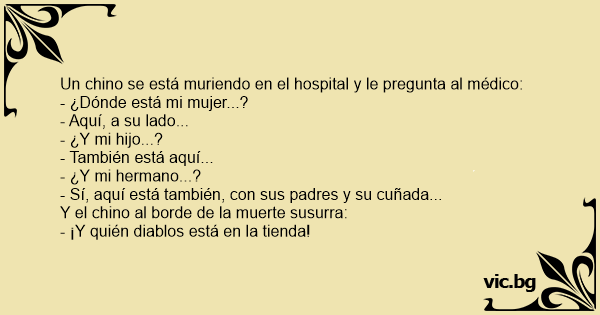 Un chino se está muriendo en el hospital y le pregunta al médico: