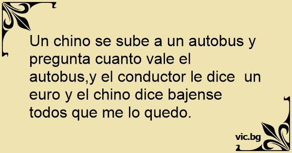 Un chino se sube a un autobus y pregunta cuanto vale el autobus,y el conductor le dice un euro y el chino dice bajense todos que me lo quedo.