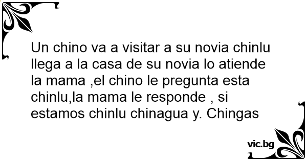 Un chino va a visitar a su novia chinlu llega a la casa de su novia lo atiende la mama ,el chino le pregunta esta chinlu,la mama le responde , si estamos chinlu chinagua y. Chingas