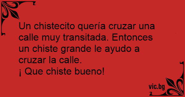 Un chistecito quería cruzar una calle muy transitada. Entonces un chiste grande le ayudo a cruzar la calle.