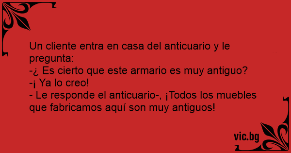 - Le responde el anticuario-, ¡Todos los muebles que fabricamos aquí son muy antiguos!