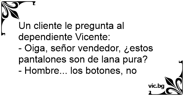 - Oiga, señor vendedor, ¿estos pantalones son de lana pura?