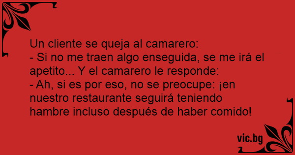 - Si no me traen algo enseguida, se me irá el apetito... Y el camarero le responde: