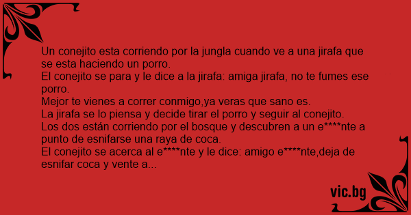 El conejito se para y le dice a la jirafa: amiga jirafa, no te fumes ese porro.