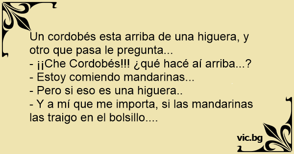 Un cordobés esta arriba de una higuera, y otro que pasa le pregunta...