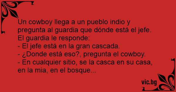 Un cowboy llega a un pueblo indio y pregunta al guardia que dónde está el jefe. El guardia le responde: