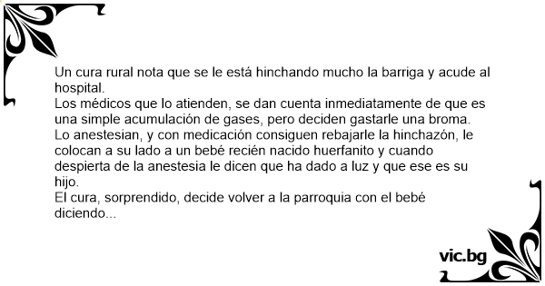 Un cura rural nota que se le está hinchando mucho la barriga y acude al hospital.