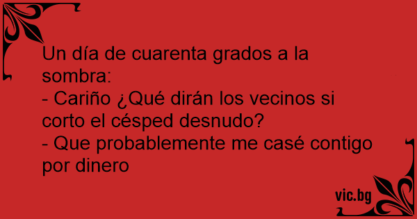 - Cariño ¿Qué dirán los vecinos si corto el césped desnudo?