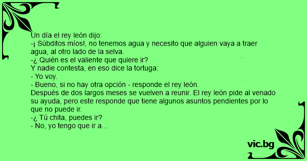 En eso se asoma la tortuga bien vestida y dice соn tono de enojada: