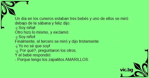 Un día en los cuneros estaban tres bebés y uno de ellos se miró debajo de la sábana y feliz dijo: