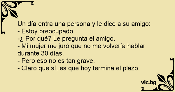 - Mi mujer me juró que no me volvería hablar durante 30 días.