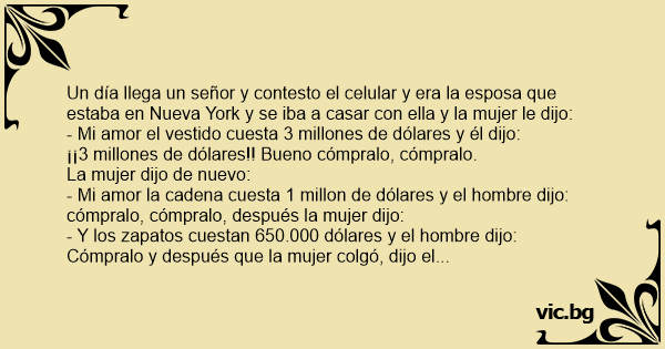Мобилен The Perfect Husband Im Einkaufsrausch Ein Anruf in der Umkleide Handy in der Sauna Το κινητό Седят няколко мутри в сауната. Μια παρέα νεόπλουτων. Мъжка групичка са във фитнес зала и звънва един GSM. Ѕвони телефон во теретана: Um grupo de homens está na sauna quando o celular começa a tocar: — Alô! — Querido? — Sim, querida. — Está na sauna? — Estou. — Sabe o que é? Estou em frente a uma loja de roupas com um casaco de vison magnífico, lindo! Posso comprá-lo? — Quanto custa o vison? — Só custa 3000 reais. — Bom, está... Vários homens estão no vestiário do clube quando um telefone celular começa a tocar. Um deles pega o aparelho no banco e atende: — Alô, amor — diz a mulher do outro lado da linha. — Estou fazendo... Een aantal mannen kleden zich om in de kleedkamer van de golfclub. Een mobiele telefoon gaat af en een van hen begint een gesprek Iedereen in de kleedkamer luistert natuurlijk mee. MAN: "Hallo"... Diversi uomini ignudi chiacchierano piacevolmente in una sauna, quando All'improvviso un telefonino si mette a suonare... - "Pronto, caro, sono davanti ad un negozio di pellicce, hanno un visone... Un grupo de hombres está en el gimnasio de un club y suena un celular. Uno de los hombres contesta: ¿ Si? ¿ Querido, eres tú? ¡Se oye horrible! ¡ Hola, hola! ¿ Estás en el gimnasio? ¡ Sí! Estoy... Több férfi ül a klub öltözőjében, edzés után. Hirtelen egy mobiltelefon csengője szólal meg az egyik padon. Egy férfi felveszi, majd beköszön: - Halló! - Kevesem, én vagyok, - szólal meg egy női... Zvoní mobil v posilovně, zvedne jej funící muž: „Prosím." „Ahoj miláčku, jsi v posilovně?" ptá se žena. „Ano jsem, co potřebuješ." odpoví muž otráveným hlasem. „Tak to je fajn. Já jsem ti jen... Sporto klubo vyrų Drabužinėje įkyriai skamba kažkieno mobilusis telefonas. Galop vienas vyriškis įjungia laisvų rankų režimą: - Klausau... Moteris: - Brangusis, čia aš. Tu klube? Vyras: - Taip.... Сидять чоловіки в лазні. Дзвонить мобілка, один взяв трубку і відповідає: — Так, люба, що ти хотіла? Шубу?! Звісно можна! Знаєш де гроші лежать. Ще чобітки? Та будь ласка! Сумочку? Та купуй!... Efter en work-out sitter några män i omklädningsrummet på ett fitnesscentrum. Plötsligt börjar en mobiltelefon att ringa. En av männen plockar upp telefonen och svarar. Följande konversation... Στο χώρο συνέλευσης μιας εταιρίας αρχίζει μια συνάντηση. Ο διευθυντής παίρνει τηλέφωνο τη γραμματέα και της λέει να μην τον ενοχλήσει κανείς. Μετά από λίγη ώρα και αφού η συνάντηση είχε αρχίσει,... Мажи вежбаат во бодибилдинг клуб и ѕвони еден мобилен телефон. Еден од мажите се јавува и вели: - Ало. - Драги ти ли си? - Да, кажи. - Вежбаш ли? - Да. - Јас сум во една продавница за кожни палта.... Pāris biezie sēž pirtī, zvana mobilais. Viens paceļ klausuli: - Hallo!? Jā, dārgā, pirtī... jā, ar draugiem... Ko nopirkt? Priekš kam Tev 11-tais kažoks? Cik? Ok, tu zini, kur nauda stāv... Pēc...