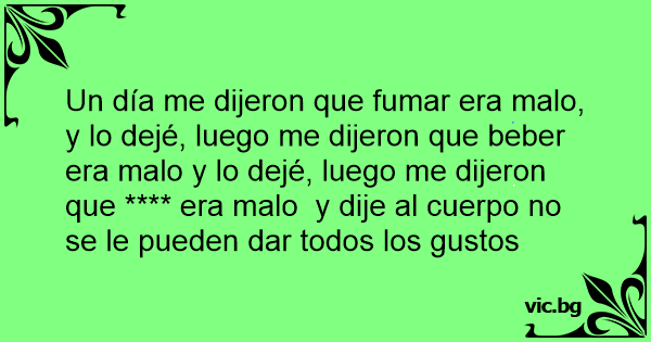 Un día me dijeron que fumar era malo, y lo dejé, luego me dijeron que beber era malo y lo dejé, luego me dijeron que **** era malo y dije al cuerpo no se le pueden dar todos los gustos