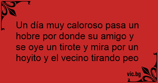 Un día muy caloroso pasa un hobre por donde su amigo y se oye un tirote y mira por un hoyito y el vecino tirando peo