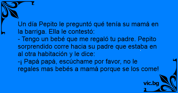 - Tengo un bebé que me regaló tu padre. Pepito sorprendido corre hacia su padre que estaba en al otra habitación y le dice:
