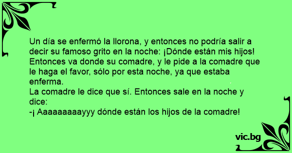 Un día se enfermó la llorona, y entonces no podría salir a decir su famoso grito en la noche: ¡Dónde están mis hijos!