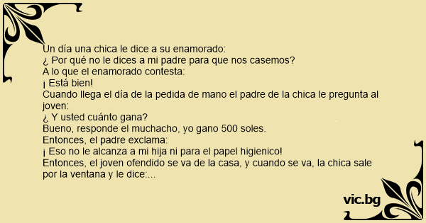 Cuando llega el día de la pedida de mano el padre de la chica le pregunta al joven:
