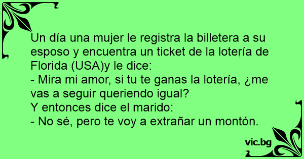 Un día una mujer le registra la billetera a su esposo y encuentra un ticket de la lotería de Florida (USA)y le dice: