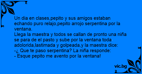 Un dia en clases,pepito y sus amigos estaban echando puro relajo,pepito arrojo serpentina por la ventana.