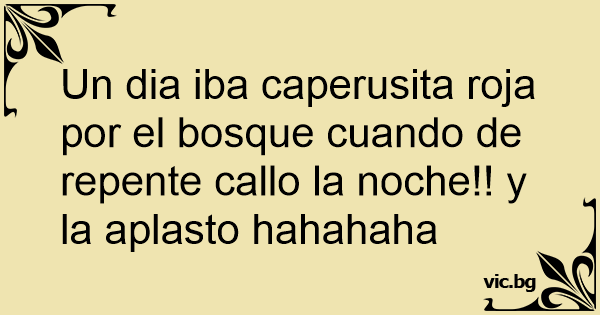 Un dia iba caperusita roja por el bosque cuando de repente callo la noche!! y la aplasto hahahaha