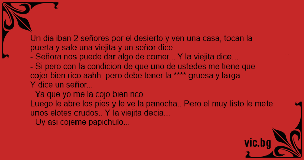 Un dia iban 2 señores por el desierto y ven una casa, tocan la puerta y sale una viejita y un señor dice...