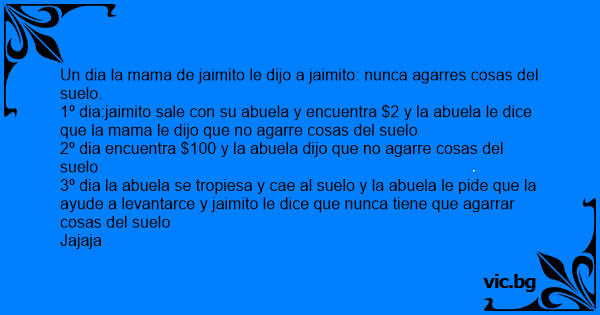 Un dia la mama de jaimito le dijo a jaimito: nunca agarres cosas del suelo.