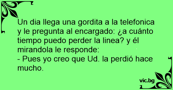 Un dia llega una gordita a la telefonica y le pregunta al encargado: ¿a cuánto tiempo puedo perder la linea? y él mirandola le responde: