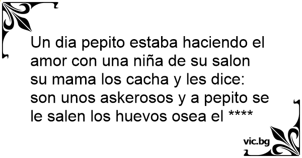 Un dia pepito estaba haciendo el amor соn una niña de su salon su mama los cacha y les dice: son unos askerosos y a pepito se le salen los huеvоs osea el ****