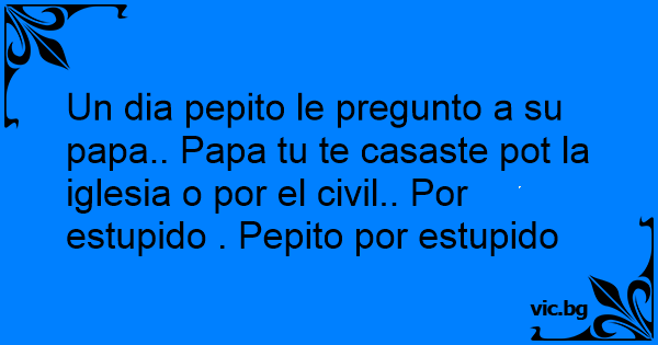 Un dia pepito le pregunto a su papa.. Papa tu te casaste рот la iglesia o por el civil.. Por estupido . Pepito por estupido