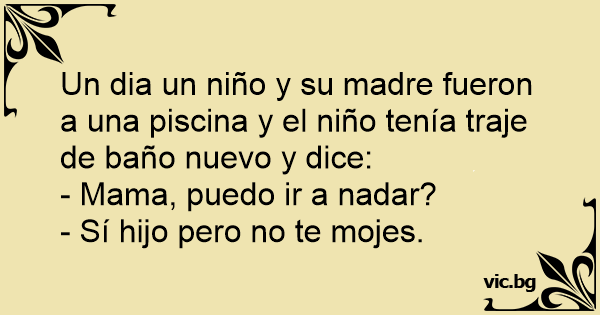 Un dia un niño y su madre fueron a una piscina y el niño tenía traje de baño nuevo y dice: