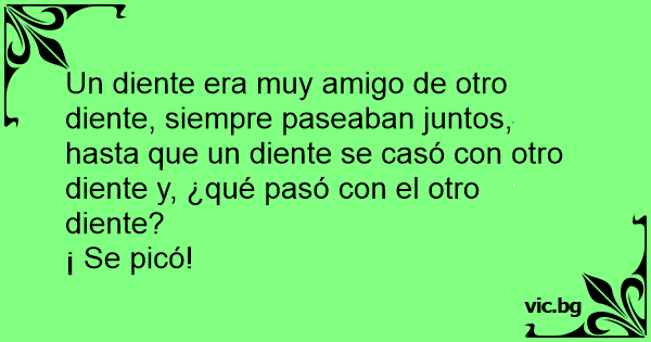 Un diente era muy amigo de otro diente, siempre paseaban juntos, hasta que un diente se casó соn otro diente y, ¿qué pasó соn el otro diente?