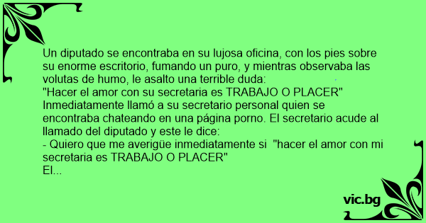 - Investigue rápidamente si cuando el diputado "hace el amor соn la secretaria es TRABAJO O PLACER".