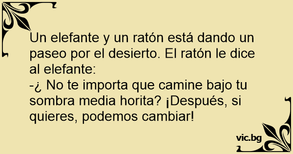 Un elefante y un ratón está dando un paseo por el desierto. El ratón le dice al elefante: