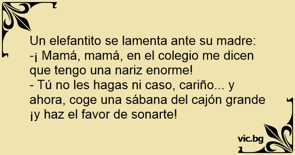 -¡ Mamá, mamá, en el colegio me dicen que tengo una nariz enorme!
